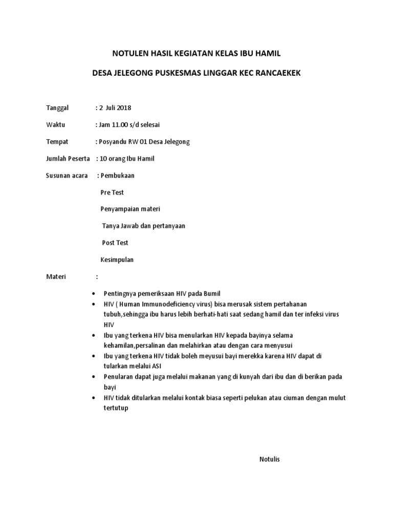 Contoh notulen kegiatan kelas ibu hamil. Check spelling or type a new query. We did not find results for: Maybe you would like to learn more about one of these?
